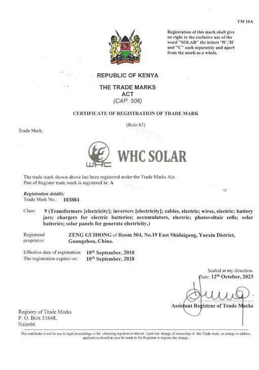 WHC SOLAR is our self-owned brand. With over 16 years of continuous innovation and development, we have built a strong presence in more than 40 African countries, including Nigeria, Kenya, Ghana, South Africa, Tanzania, Cameroon, and Zambia. Our deep understanding of local energy needs, combined with strong after-sales service and fast delivery channels, makes us a trusted solar brand in Africa.